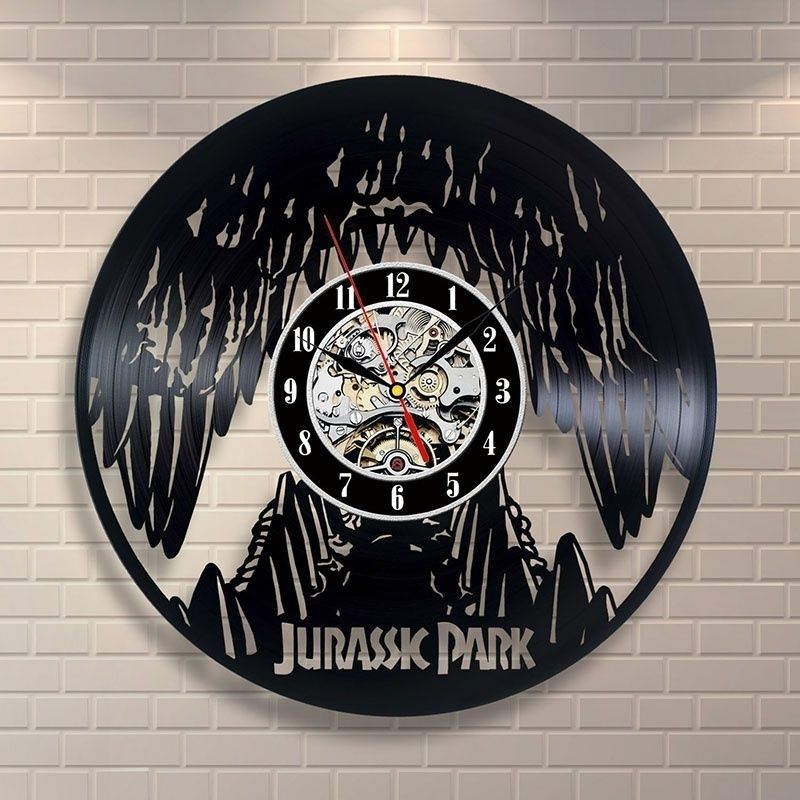 Jurassic Park Art Vinyl Wall Clock Gift Room Modern Home Record