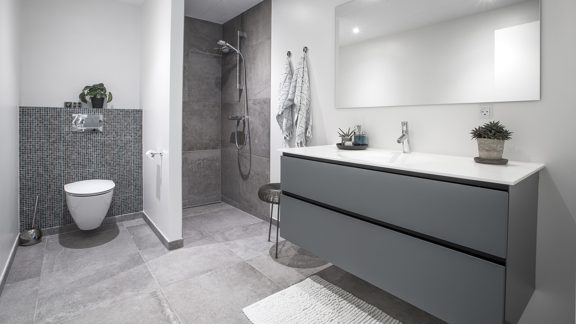 Se nogle af vores faerdige badevaerelser og smarte losninger pa denne side. Vi star klar til at radgive og vejlede i processen omkring nyt badevaerelse. Er der plads til mere end en handvask og hvor meget opbevaring i form af skabe skal der vaere i badevaerelset.